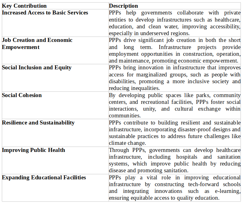 Public Private Partnerships (PPPs) are growing increasingly crucial to driving social well-being directly by developing essential infrastructure. The combination of the strengths of both public and private sectors in a PPP increases the quality, accessibility, and sustainability of such vital infrastructure in underpinning social services while creating lasting positive impacts within communities.